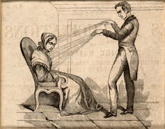 La pratique des magnétiseurs est certes étrangère au magnétisme décrit par la physique, mais c’est bien un autre « type » de magnétisme qu’ils entendent manipuler : le magnétisme animal. Pour comprendre ce dont il s’agit, il faut remonter au XVIIIᵉ siècle – époque où les phénomènes électromagnétiques intriguaient profondément l’Europe – et s’intéresser à un certain Mesmer.