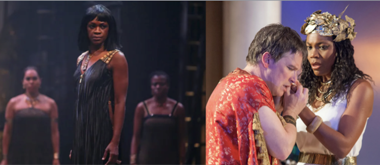 Cléopâtre a déjà été incarnée avec succès, au théâtre, par des actrices noires, comme Yanna McIntosh dans l’Antoine et Cléopâtre de Shakespeare (Stratford Festival, 2015). Ce qui d’ailleurs n’est pas en contradiction avec le texte, puisque la reine y est définie comme une « noiraude » (« tawny front »).
