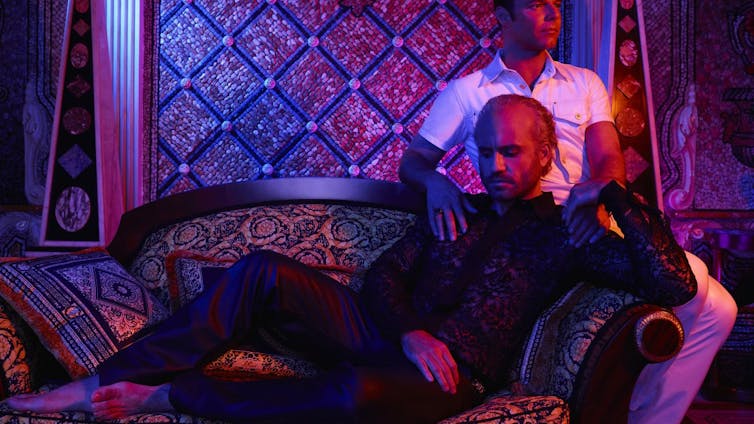Une Penelope Cruz peroxydée campe la célèbre cadette de Gianni, Donatella, et s’oppose à grand renfort de regards glaçants et de répliques assassines à celui qui fut durant quinze ans le compagnon de son frère, Antonio D’Amico, interprété par un Ricky Martin tout en retenue. De l’autre, la caméra suit les pérégrinations meurtrières d’Andrew Cunanan, un jeune homme perdu faisant preuve d’une effrayante ingéniosité lorsqu’il s’agit de se frayer un chemin jusqu’à ses victimes. Sans le sou, le personnage invite le spectateur à arpenter avec lui les discothèques underground et les hôtels miteux, à mille lieues de la richesse ornementale de la famille Versace mais ô combien plus vivants – et pas forcément plus inquiétants.