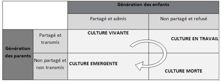 Dès lors, nous pouvons schématiser la dynamique de la culture dans un tableau à double entrées :