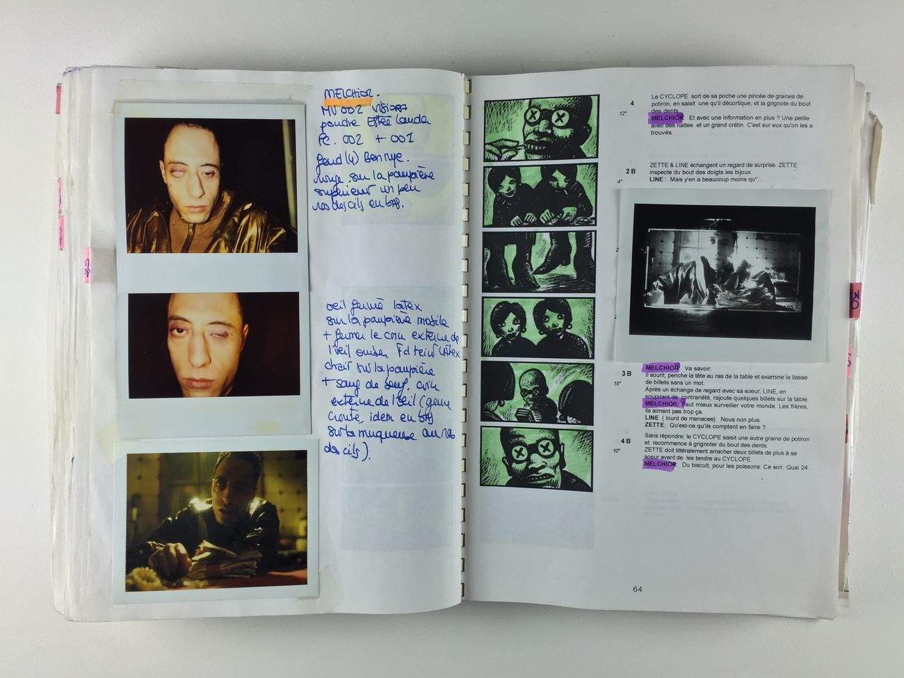 Les costumes de Nino et Amélie sont d’ailleurs là, parmi des dizaines d’objets utilisés dans les films réalisés par Marc Caro et Jean-Pierre Jeunet, ensemble (« Delicatessen », « La Cité des enfants perdus »…) ou séparément. Dès l’entrée, sont accrochés les claps de ces films, dont « Amélie » qui n’était pas encore titré « Le fabuleux destin d’Amélie Poulain ». C’est comme si on entrait dans une caverne magique, ou un curieux atelier de fabrication, où ont été imaginés des objets fantastiques et conçus des machines absurdes. Comme si on entrait sur un plateau de tournage, où seraient rassemblés tous les trésors de ces deux artisans du cinéma.