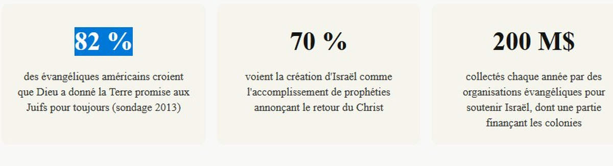 L’organisation CUFI — Christians United for Israel — fondée par le pasteur John Hagee revendique plus de dix millions de membres. Elle organise chaque année à Washington une « Nuit pour honorer Israël » où se côtoient pasteurs, sénateurs et anciens vice-présidents. Pour ses adhérents, soutenir Israël n’est pas une opinion politique : c’est un acte de foi dicté par Genèse 12 — « Je bénirai ceux qui te béniront ». Soutenir l’État hébreu, c’est s’assurer la bénédiction divine. Et accélérer la fin des temps.