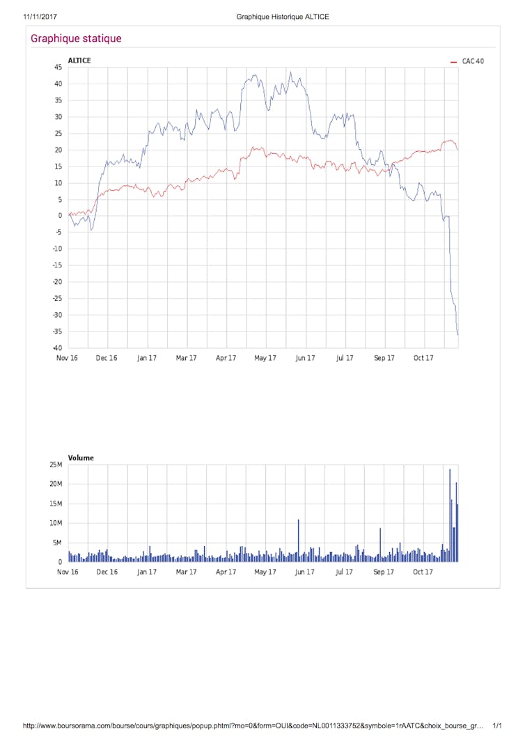 Mais le 16 octobre 2017, Altice annonçait la suspension de son programme de rachat d’actions et son remplacement par un autre, d’un montant équivalent. Cette fois l’annonce venait démentir la promesse faite aux investisseurs et constituait un très « mauvais signal ». Peu de temps après, le 3 novembre, le directeur général d’Altice US, qui rassemble les actifs cotés américains du groupe, déclarait donner la priorité à l’opérationnel plutôt qu’aux fusions-acquisitions.
