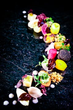 Il ne s’agit pas d’un effet de mode autour du vegan propre à la cuisine contemporaine, mais d’une démarche, depuis longtemps soucieuse des enjeux durables, qui commence tout simplement par la découverte et la récupération dans la nature des substances nécessaires au gré de ses déambulations saisonnières. Un chef cueilleur ancré dans son territoire, mais pas seulement.