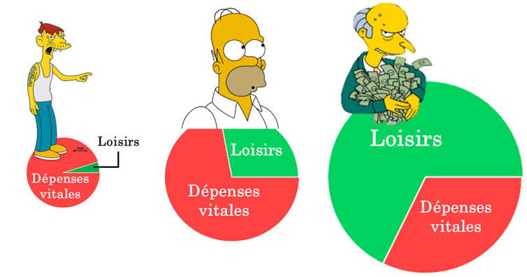 Illustration avec des personnages des Simpson de la Loi d’Engel (loi selon laquelle la part du revenu allouée aux dépenses alimentaires est d’autant plus faible que le revenu est élevé).