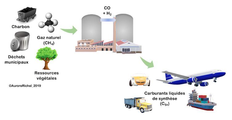 Ces ressources subissent une première conversion thermochimique (à très hautes températures) qui va les transformer en un mélange de monoxyde de carbone (CO) et de dihydrogène (H2). Ce mélange va ensuite être traité pour donner aboutir à un carburant de synthèse : soit de l’essence, du diesel ou bien du kérosène. C’est ce que l’on nomme procédé de Fischer-Tropsch.
