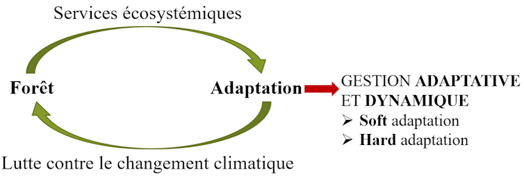 Les forêts nous offrent en effet de nombreux services écosystémiques : bois, eau potable, protection des sols à l’érosion, lieu récréatif, etc. Une continuité dans la fourniture de ces services suppose une adaptation des forêts. Et l’absence d’adaptation correspondrait à un accroissement non-contrôlé du stock de carbone, qui pourrait alors être massivement émis dans l’atmosphère en cas de perturbation, et contribuer à l’accentuation du changement climatique. La non-adaptation ou la mal-adaptation représenterait alors une mise en danger de la forêt mais aussi de la population.