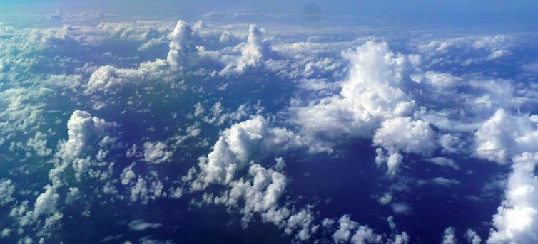 Cette source de désaccord provient de l’échelle avec laquelle les modèles prennent en compte les nuages. En effet, les modèles de climat représentent la circulation de l’atmosphère sur des mailles qui mesurent environ 100 kilomètres. Or beaucoup de nuages ont une taille typiquement inférieure à cette échelle. Par exemple, un petit nuage de beau temps (cumulus) mesure quelques centaines de mètres de longueur, un nuage d’orage (cumulo-nimbus) quelques kilomètres.