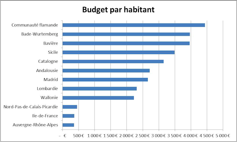 Les régions françaises ont atteint une taille critique, en termes de superficie et de population. Les dernières réformes les placent dans une position de pilote des politiques publiques régionales. Mais elles sont encore bien loin du budget des régions allemandes ou espagnoles, 5 à 10 fois inférieures, comme en témoigne un billet d’Olivier Bouba-Olga, professeur des Universités en aménagement de l’espace et urbanisme à l’Université de Poitiers.