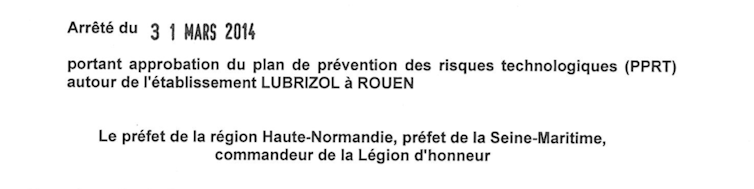 Le PPRT de Lubrizol a été acté en 2014 après une enquête publique qui s’était achevée en janvier de la même année. À ce titre, le rapport du commissaire enquêteur est important, car il fait la synthèse de toutes les remarques, et donne souvent lieu à des recommandations et à un avis favorable ou défavorable. Dans le cas de Lubrizol, l’avis fut favorable sans aucune recommandation particulière.