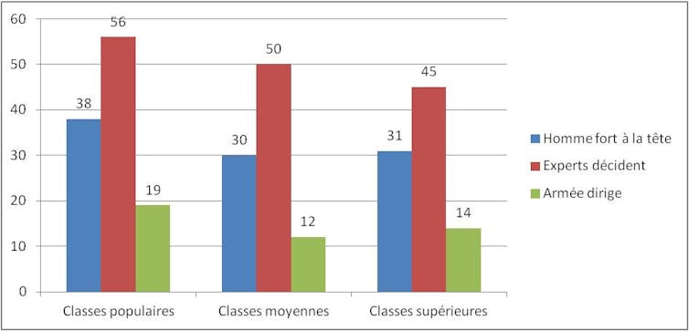 Graphique 2 – la demande d’autoritarisme politique par classe sociale (%).