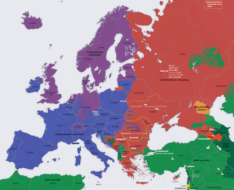 Toutefois, quand on parle d’Europe chrétienne, on ne pense pas seulement aux paysages et aux bâtiments. Il s’agit plutôt d’arrimer le destin politique de la construction européenne à celui de ce que l’on a appelé la Chrétienté. Ce terme n’est lui-même pas très clair. Utilisé avec une majuscule, il désigne généralement un territoire et une période historique à peu près déterminés, que les historiens font généralement commencer avec l’Empire carolingien (9ᵉ siècle), et qui se termine avec le grand schisme d’Occident au XIVe siècle, sans que le terme disparaisse par la suite. Il s’agit globalement du territoire des chrétiens utilisant le latin, par opposition aux chrétiens grecs (Empire byzantin) et à l’Islam.