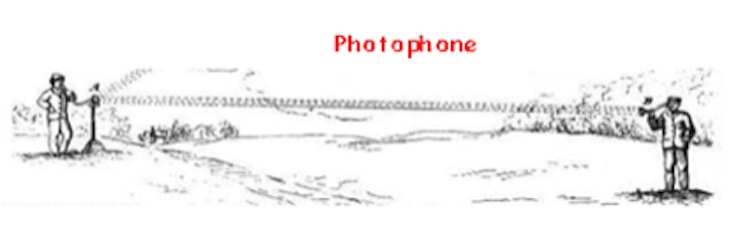 Mais il faut attendre la fin du XIXe siècle avec le photophone d’Alexander Graham Bell (visible dans les réserves des Arts et Métiers à Saint-Denis) pour qu’une transmission de la parole par la lumière devienne effectivement réalisable.