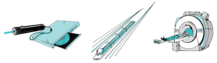 Comme toute recherche fondamentale, la physique quantique n’a pas à se « justifier » d’être utile. Comprendre comment fonctionne le monde à l’échelle de l’atome a été, à mon avis, une des plus grandes conquêtes de l’esprit humain, même si cela ne devait finalement servir à rien ! Mais rassurez-vous, la quantique est probablement la discipline la plus utile de la physique moderne. Car une fois que les physiciens ont compris le fonctionnement de la lumière, des atomes et des électrons, ils ont été capables les manipuler. Ils sont ainsi passés du stade de la compréhension à celui de l’invention. Le laser est souvent cité comme magnifique exemple d’invention quantique. Mais il n’est pas seul : l’IRM dans les hôpitaux, les diodes électroluminescentes (LED), les mémoires flash, les disques durs, tous ont été inventés par des physiciens de la quantique.