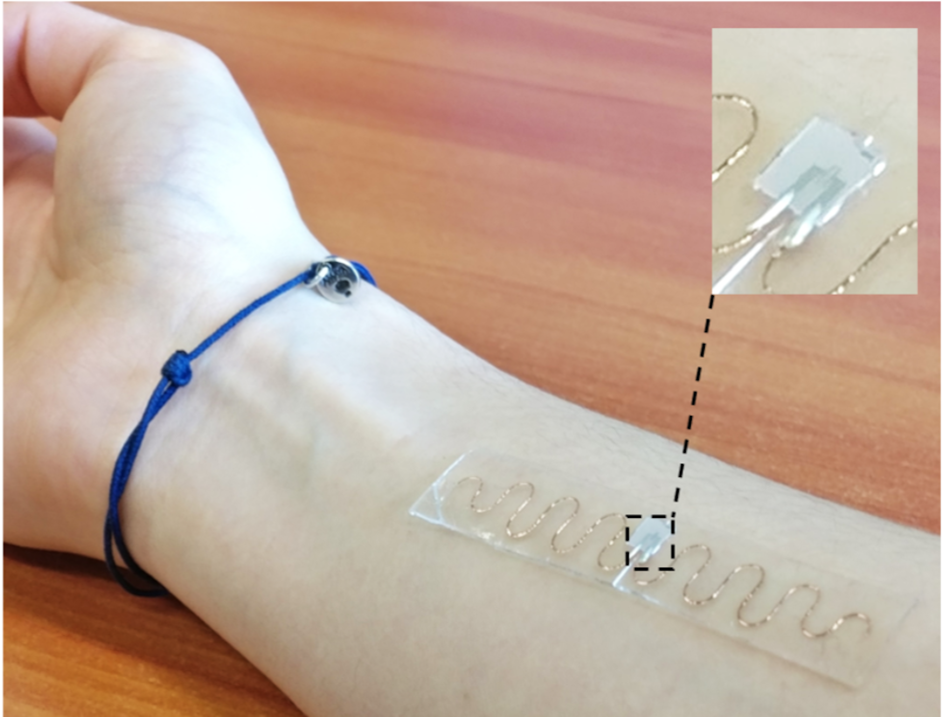 Dans nos sociétés modernes, la connaissance en continu des paramètres du corps humain pourrait devenir un besoin. Qu’il s’agisse d’une utilisation dans le domaine biomédical ou dans celui du sport ou du bien-être, les objets connectés qui surveillent les paramètres corporels font partie d’un marché en pleine croissance estimé à plusieurs milliards de dollars. Cependant, la présence de fils, de bracelets et/ou de connectiques est inconfortable et empêche les utilisateurs de porter en permanence ces objets connectés.