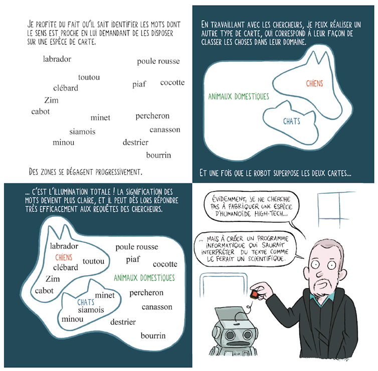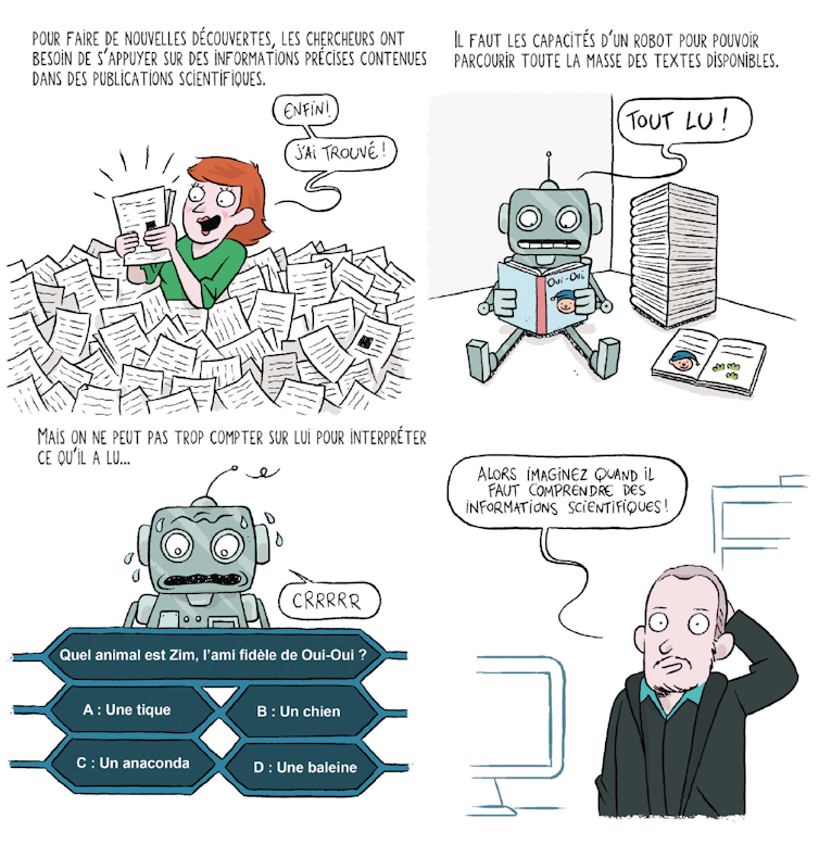 Mon but : aider les chercheurs, tous domaines confondus, à trouver les informations dont ils ont besoin dans l’océan des publications scientifiques. Sachant qu’il y en a beaucoup trop pour y parvenir sans l’aide d’un robot. Mais d’un robot… éduqué ! Car, aujourd’hui, malheureusement, aucun n’a encore le niveau pour comprendre un texte aussi bien qu’un humain.