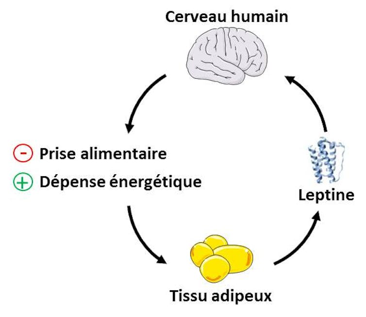La leptine joue un rôle clé dans le contrôle de la balance énergétique. Cette hormone est fabriquée et relarguée dans le sang par le tissu adipeux (graisses du corps), notamment après un repas.
