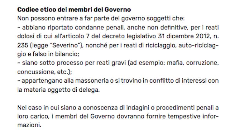 La coalition du Mouvement 5 étoiles, populiste, et de la Ligue, anciennement Ligue du Nord et d’extrême droite, gouvernant aujourd’hui l’Italie, a décidé dans son programme publié le vendredi 18 mai 2018, d’interdire aux francs-maçons de faire partie du gouvernement.