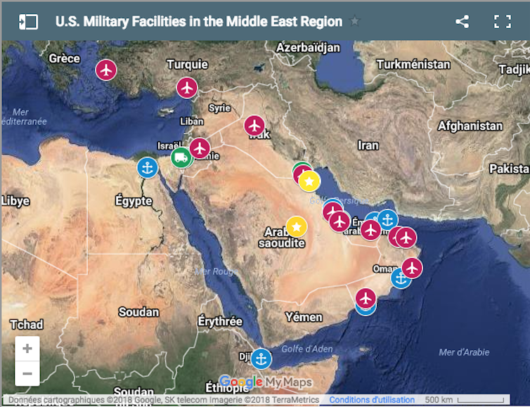 Un simple coup d’œil sur une carte de l’Iran montre que la République islamique est entourée de bases et troupes américaines, ainsi que de pays proches alliés des États-Unis ou de l’Arabie saoudite.