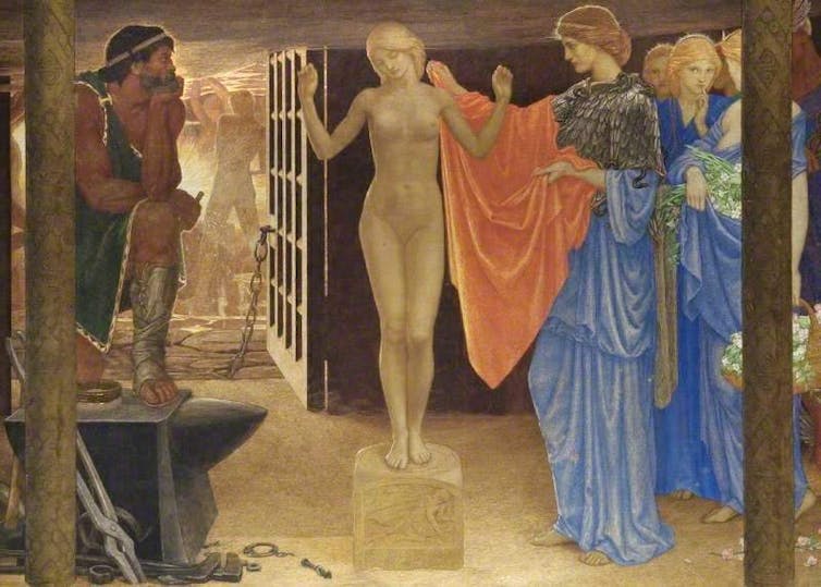 Pourtant, si l’ère des poupées en silicone interconnectées est une invention du XXIe siècle, l’idée d’une « femme artificielle », en revanche, était déjà bien présente dans les mythes de la Grèce ancienne.