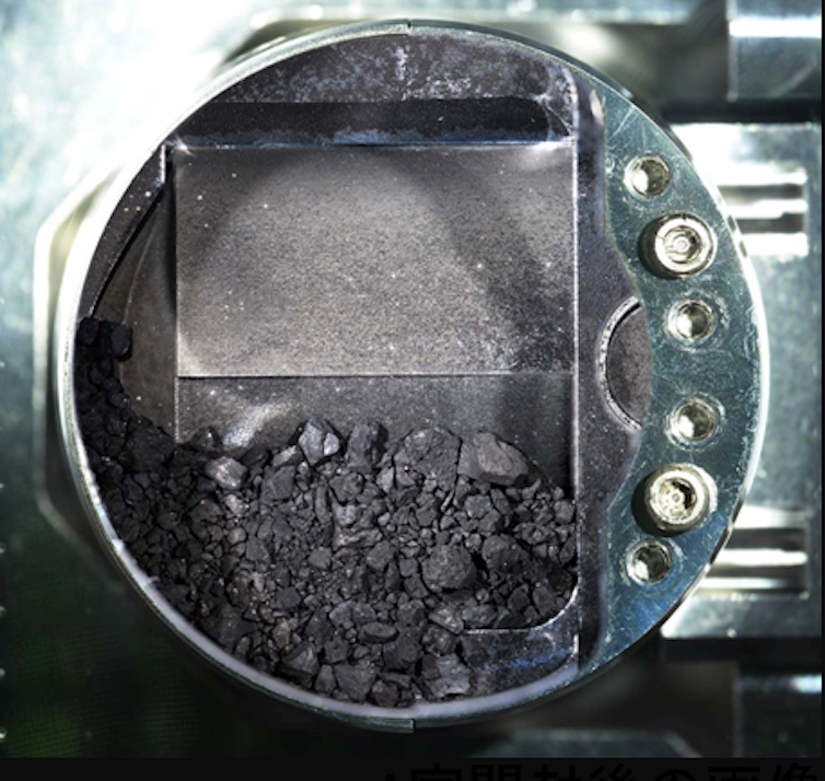 Le vaisseau spatial a quitté l’astéroïde en novembre 2019 et a ramené sa précieuse cargaison en larguant la capsule contenant les échantillons qui atterrit le 5 décembre 2020 à Woomera en Australie. La capsule étant étanche, le gaz ambiant à l’intérieur a été récupéré et sera analysé dans plusieurs laboratoires. L’échantillonnage a été envoyé au centre de la JAXA à Tokyo, où les scientifiques ont eu l’excellente surprise de découvrir 5,4 grammes de grains et de poussière noire, 50 fois plus que la quantité nominale attendue.